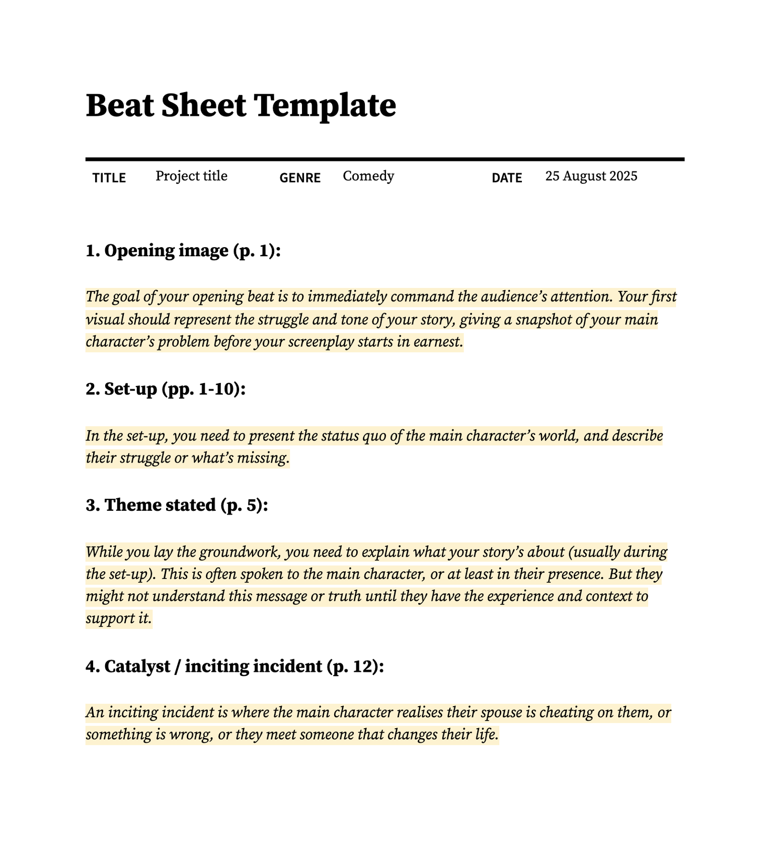 The solution: Customize the template to reflect your production’s unique characteristics. Don’t hesitate to add or remove categories and continually assess the template to ensure it remains aligned with your project’s evolution.