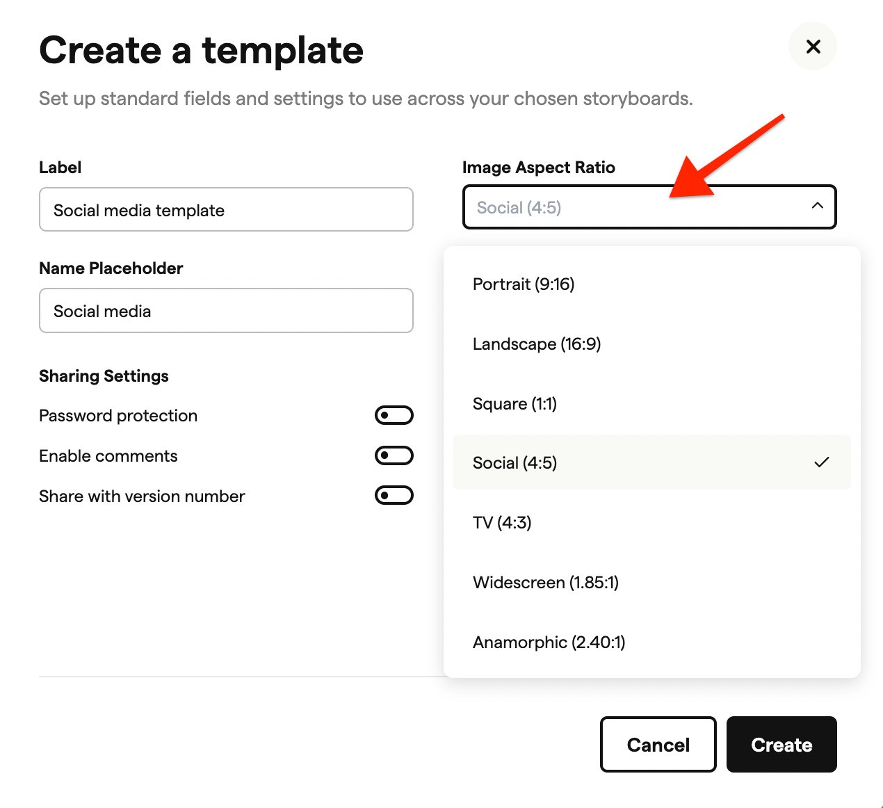 Whether you're working with multiple clients who each have specific format requirements, or you want to standardise how your team sets up storyboards, templates let you define the settings once and apply them instantly.